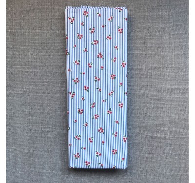 Coupon fleurs rouges fond bleu clair Coupon fleurs rouges fond bleu clair